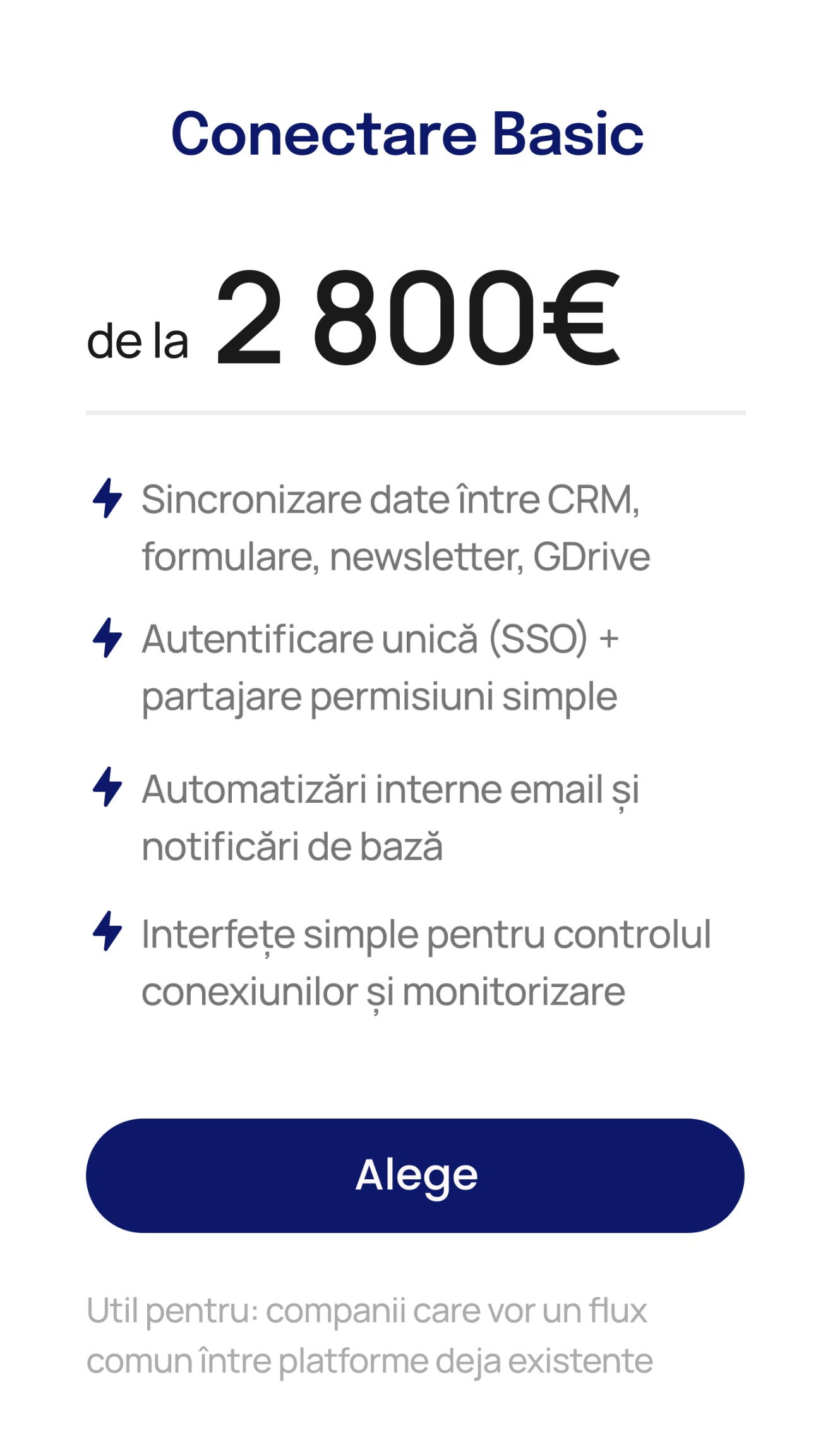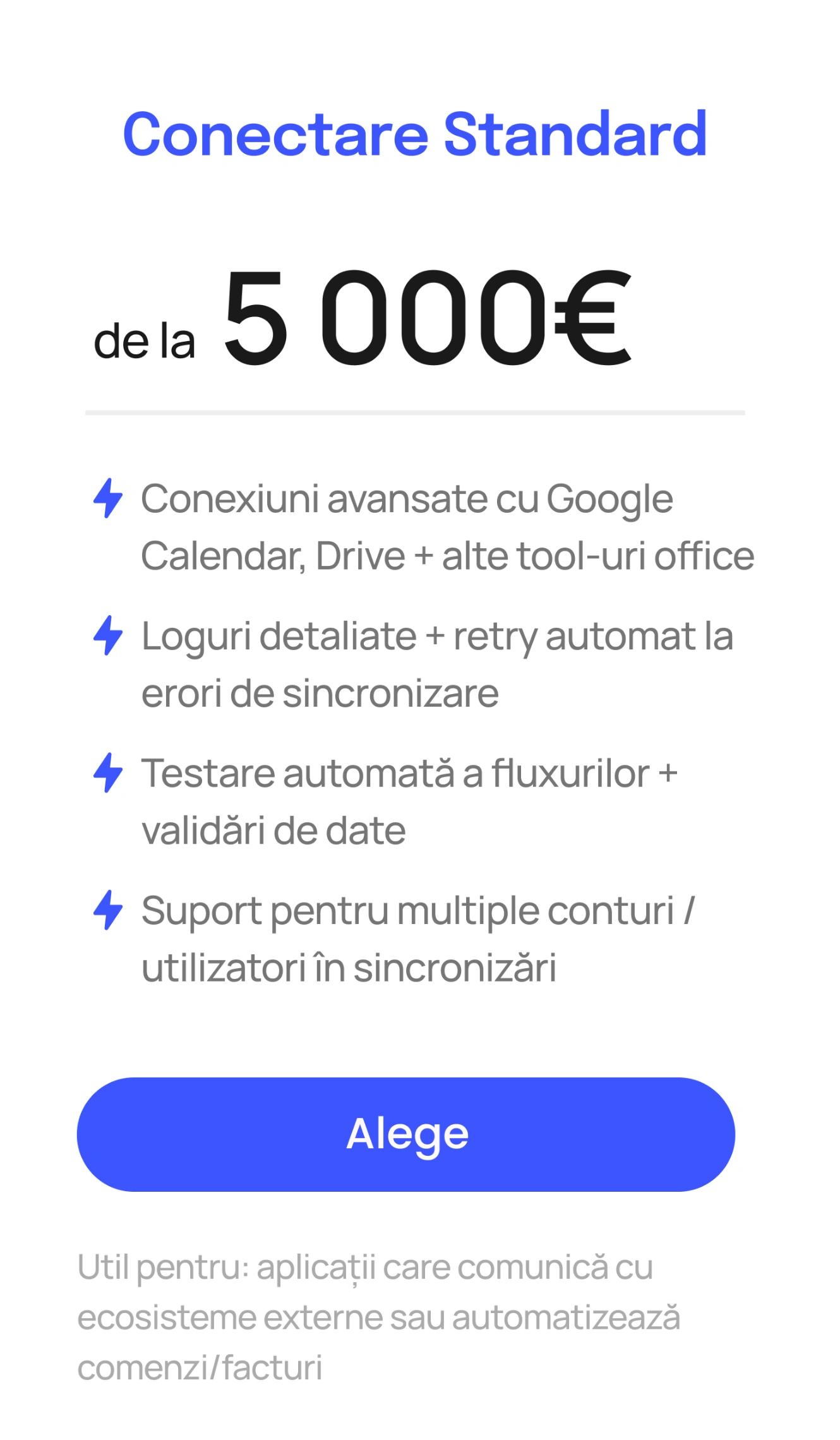 Fie că vrei să conectezi instrumentele de bază sau să automatizezi tot fluxul, aici găsești direcția potrivită pentru afacerea ta.