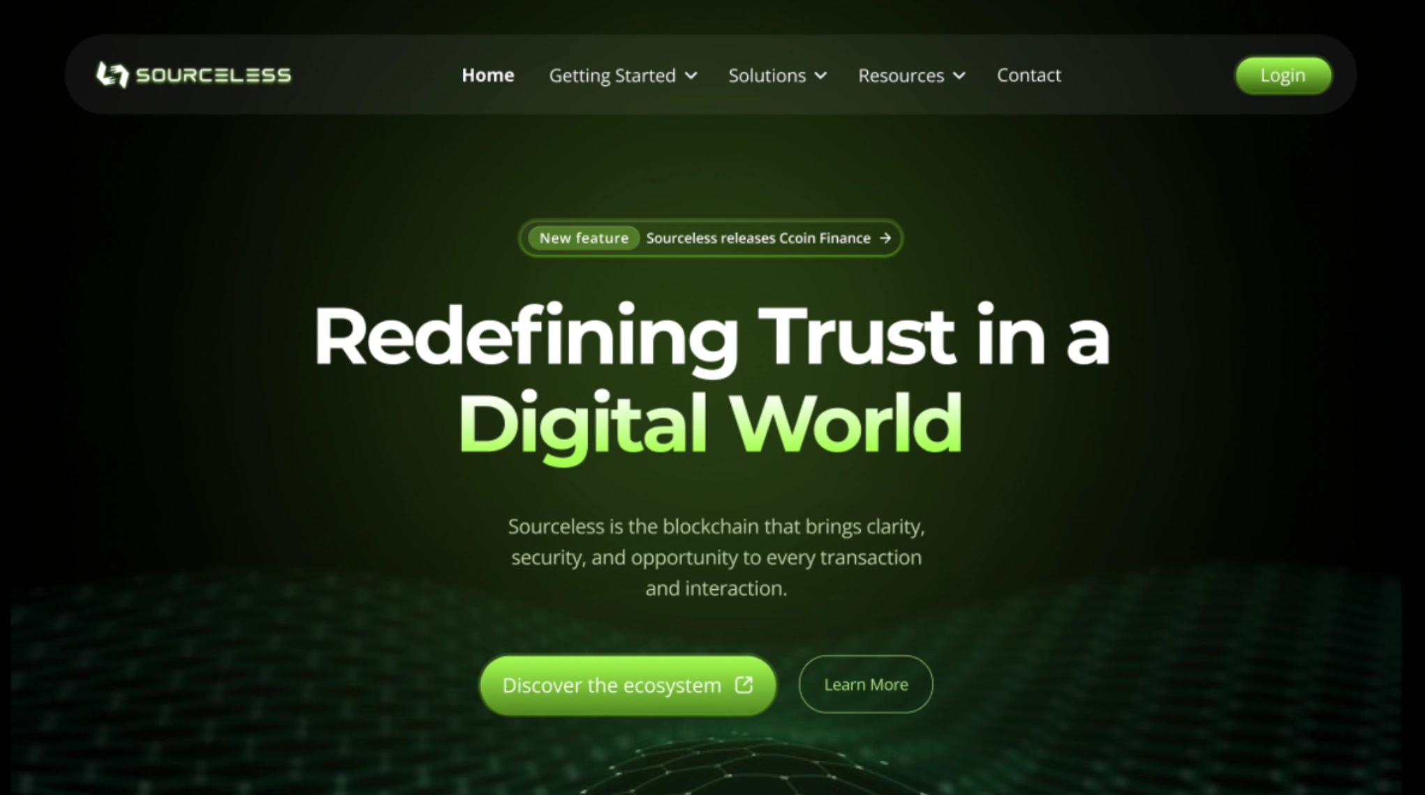 Sourceless, pionier în blockchain și criptomonede, oferea multiple servicii fragmentate: domenii private (Str.domains), suport AI (Str.talk cu Ares), moneda Ccoin, marketplace NFT (Str.dome) și finanțe crypto. Am creat un hub centralizat la sourceless.net, cu rebranding modern, design coerent și experiență fluidă, transformând un set de tool-uri disparate într-un ecosistem integrat care inspiră încredere și simplifică interacțiunea utilizatorilor.
