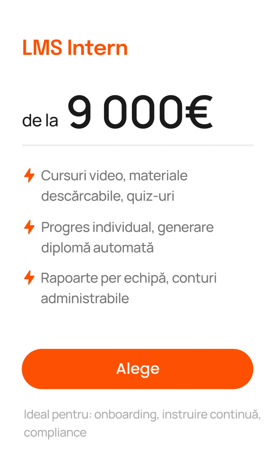 De la onboarding și cursuri interne până la evaluări periodice și upgrade a abilităților, digitalizezi complet procesul de învățare, cu un sistem personalizat pentru echipa ta.
